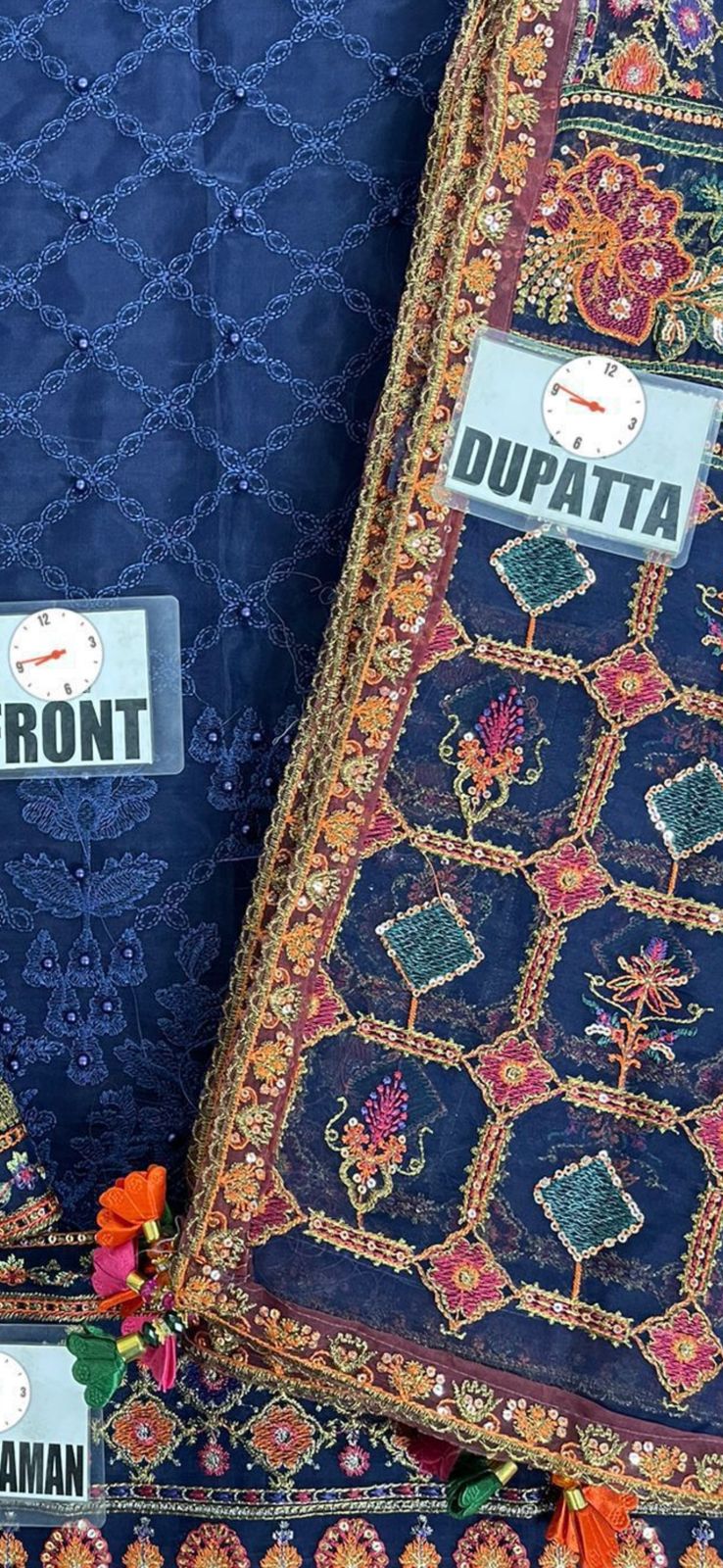 Whether you’re dressing for a celebration or a special evening, this outfit captures attention with its intricate embroidery and graceful flow. The luxurious organza fabric, detailed handwork, and timeless design make it a perfect addition to your wardrobe — elegant, refined, and effortlessly beautiful.